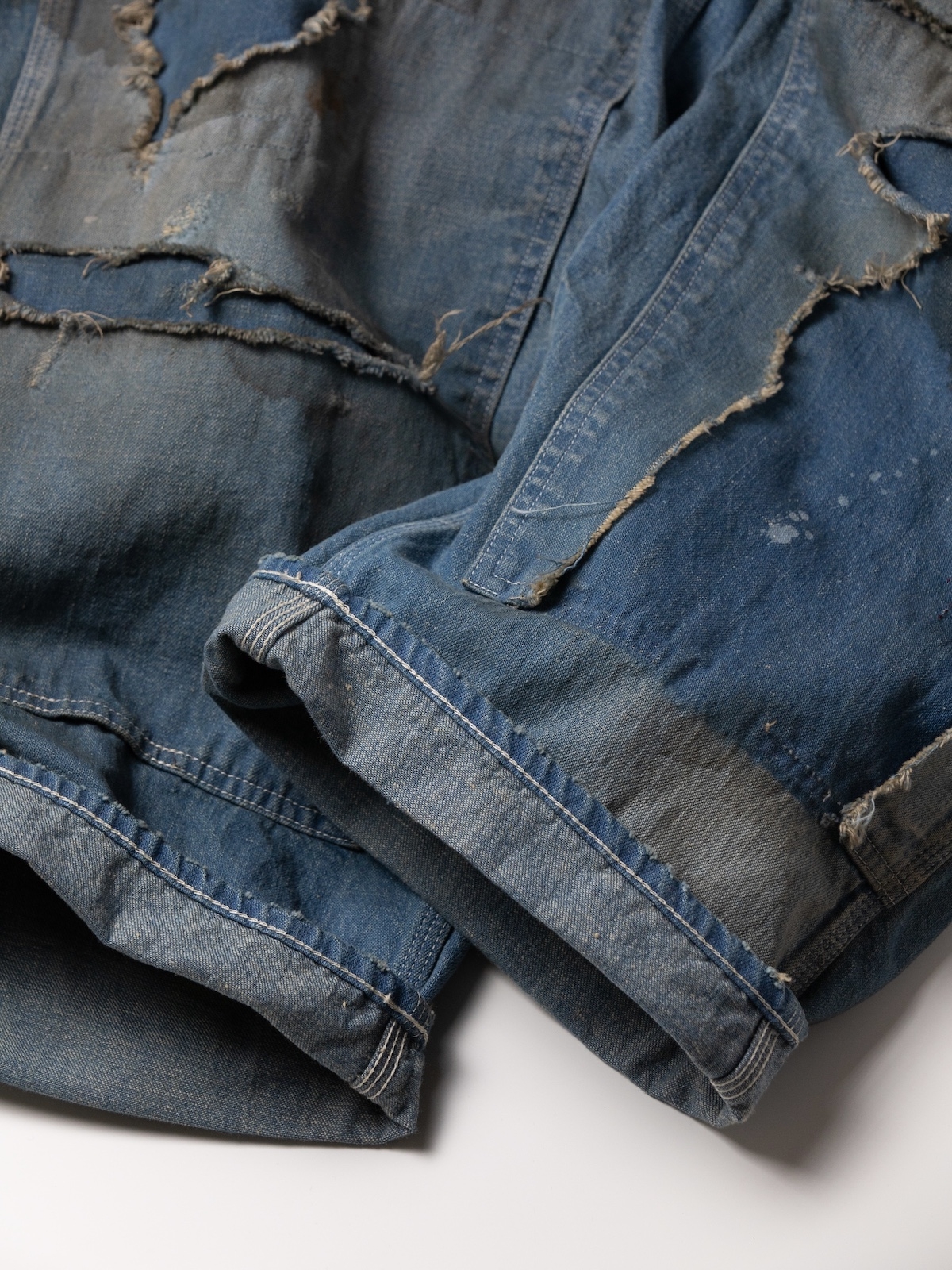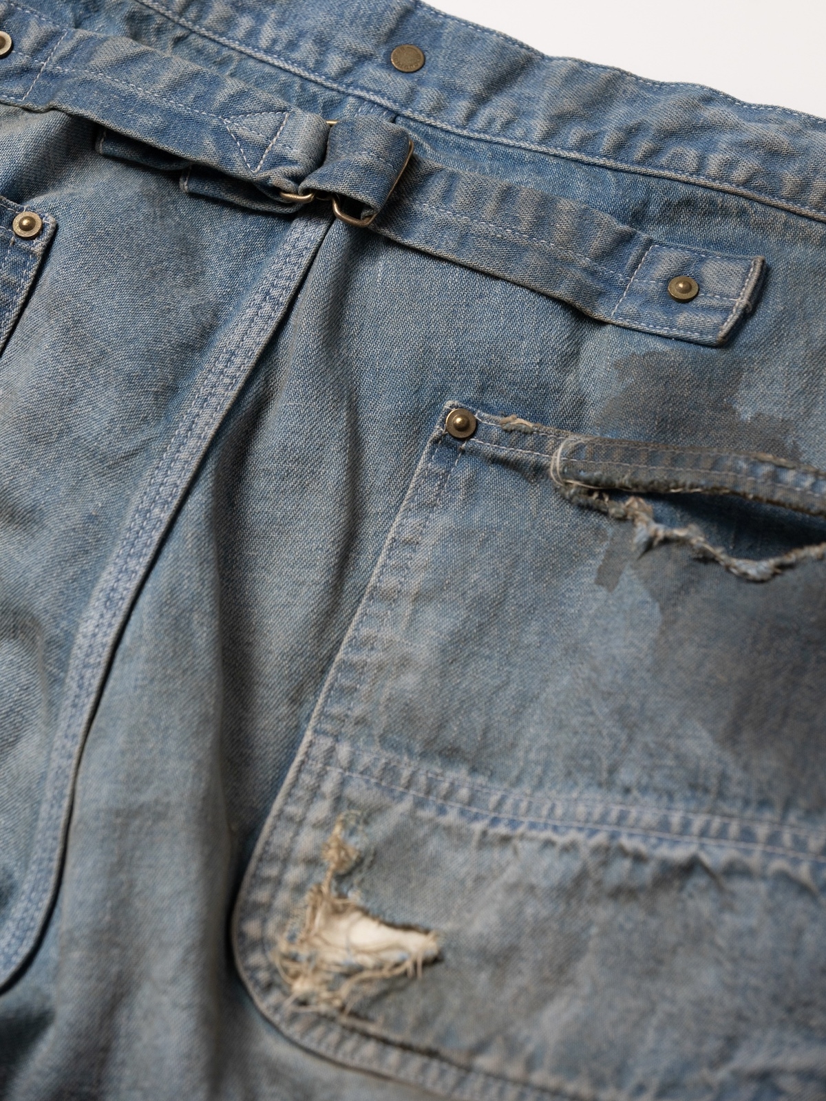 着古したエイジング感をベースにハードなダメージ、そしてハンドステッチなど様々な手法にてリメイクを施し、唯一無二な一本へと進化を遂げました。