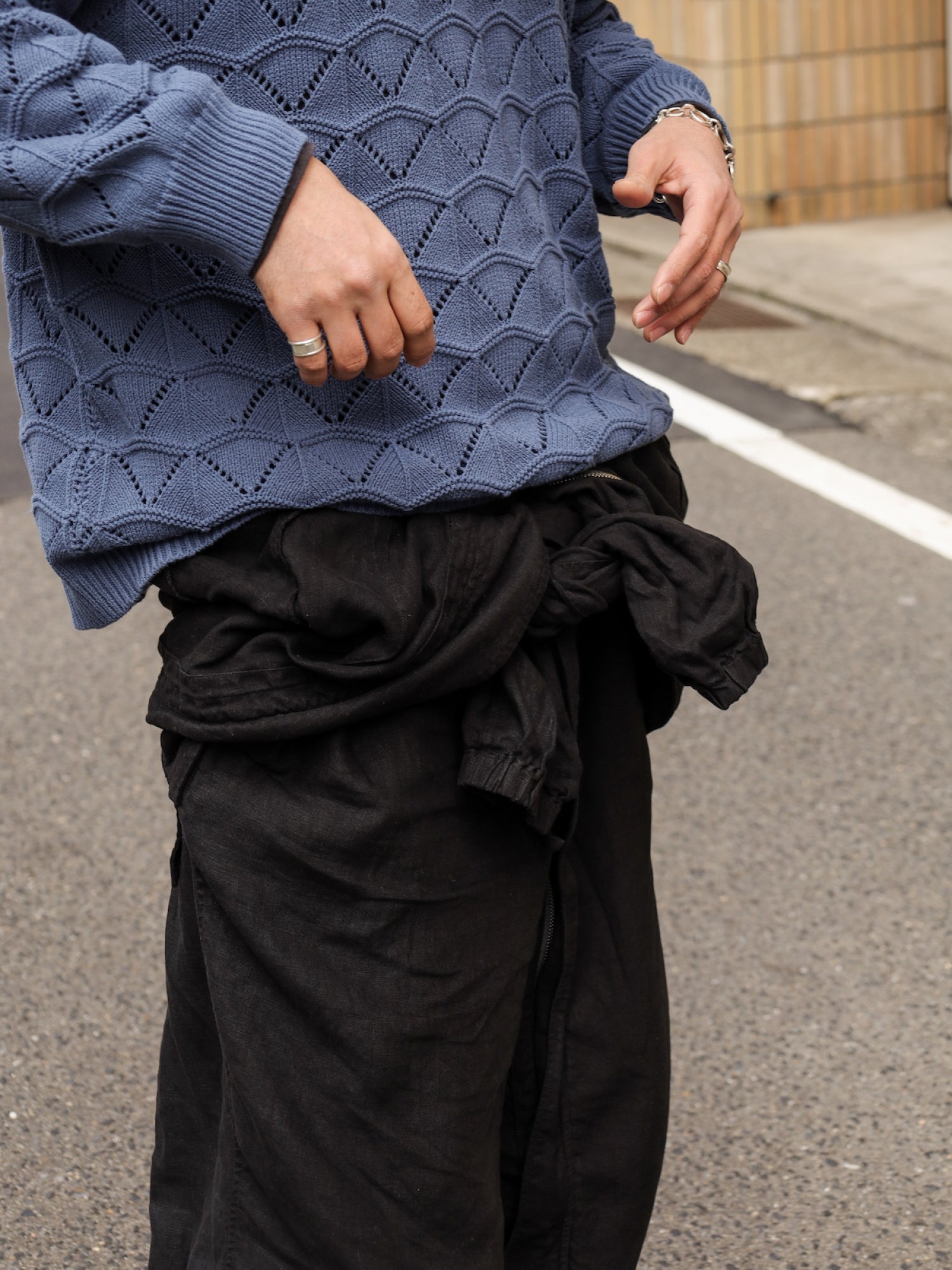リネンアイテムなので暑さが厳しい季節でも難なく着用して頂けますし、夏場は白Tにこれを腰巻で…