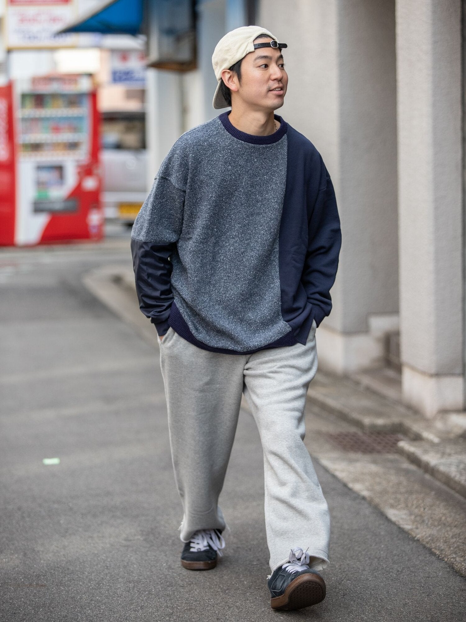スウェット・ニット・ナイロン、素材の異なる三種類の生地を採用し構築した同ブランドの新作『GRUNGEBOY KNIT』をデザインベースに僕らのナウな気分をカラーリングに反映させた別注仕様です。