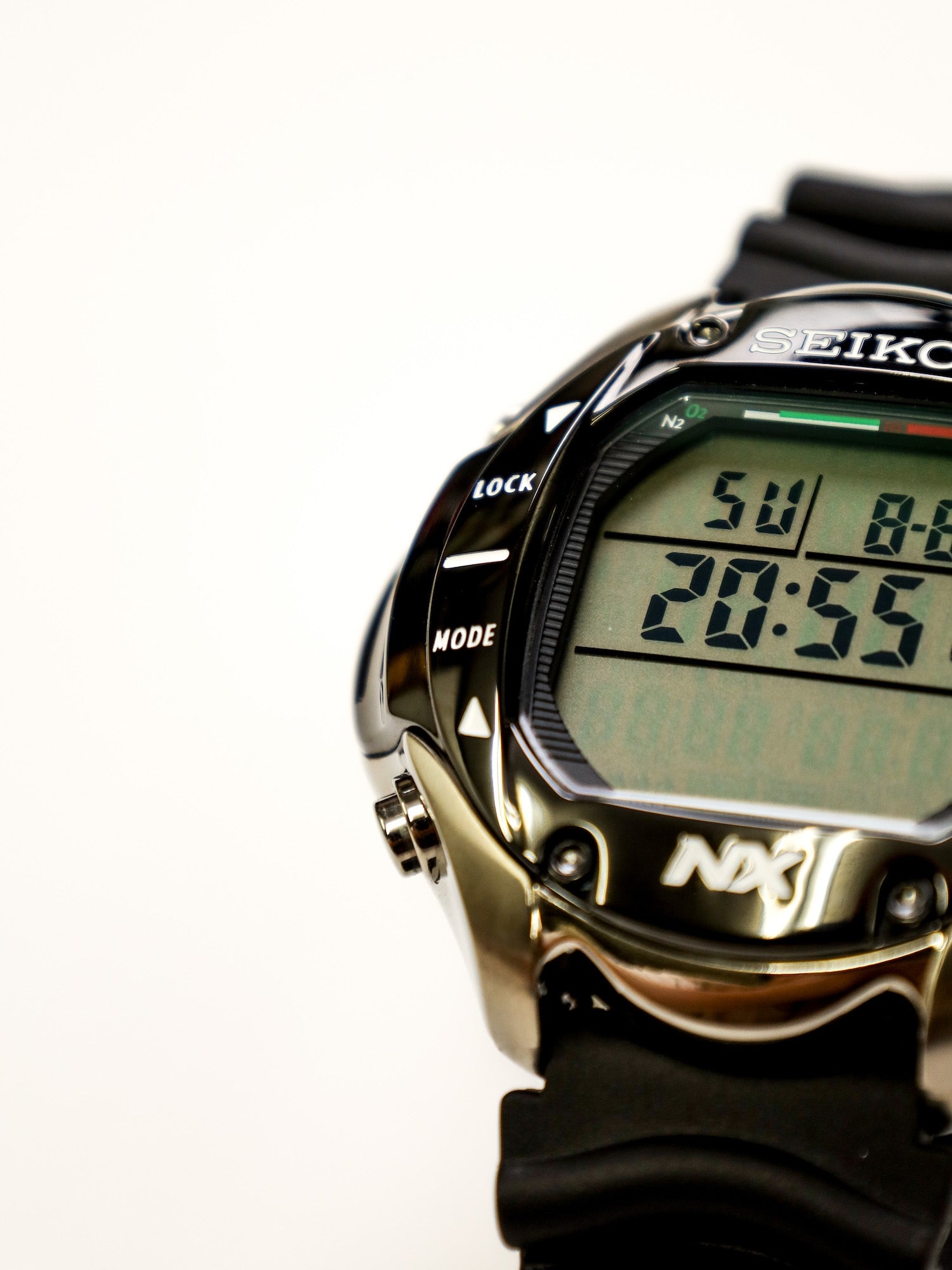 ダイバーズウォッチには珍しいデジタル式が採用された、こちらはなんと「ダイビングコンピューター」を内蔵した特殊仕様なんです。