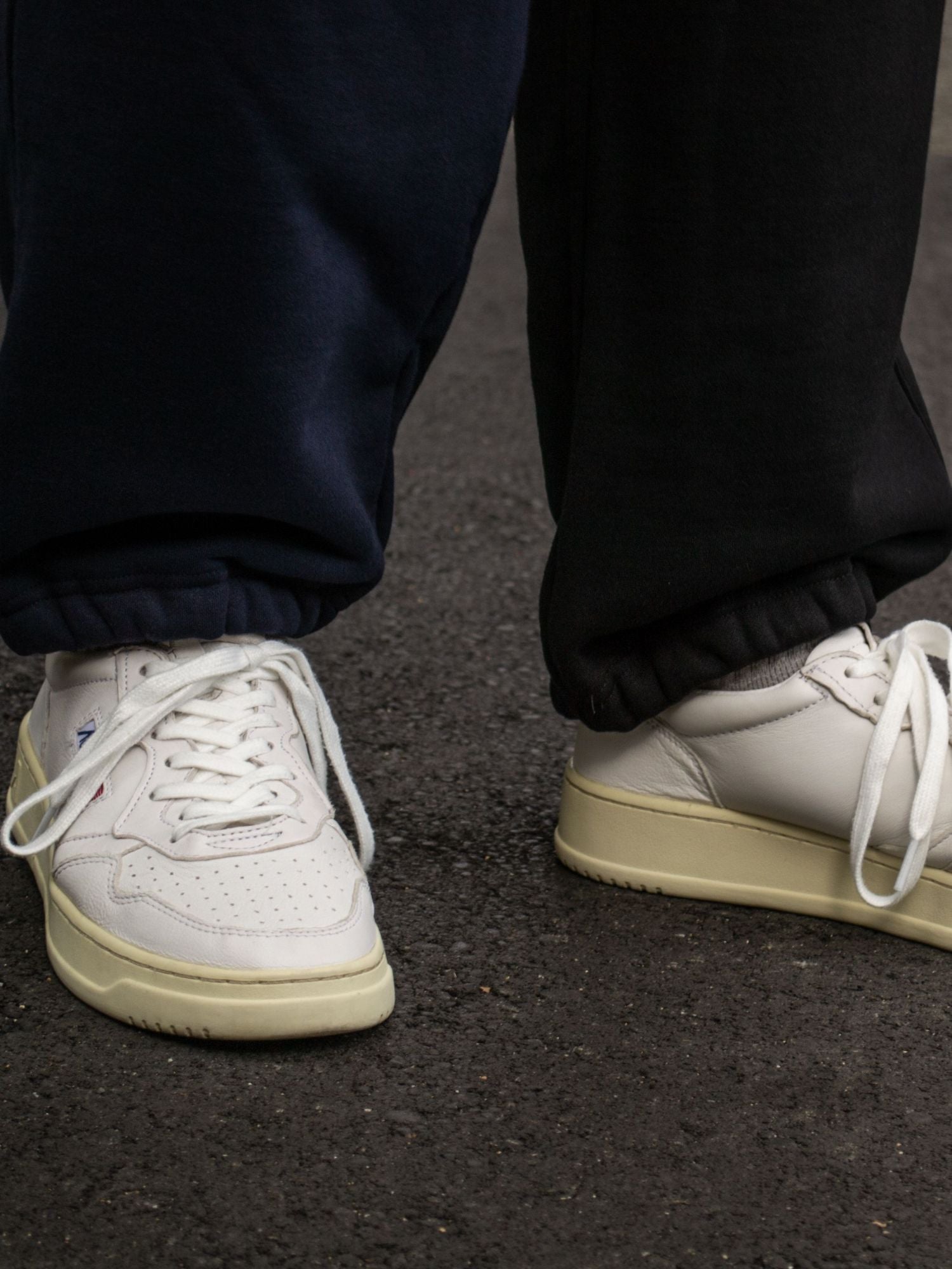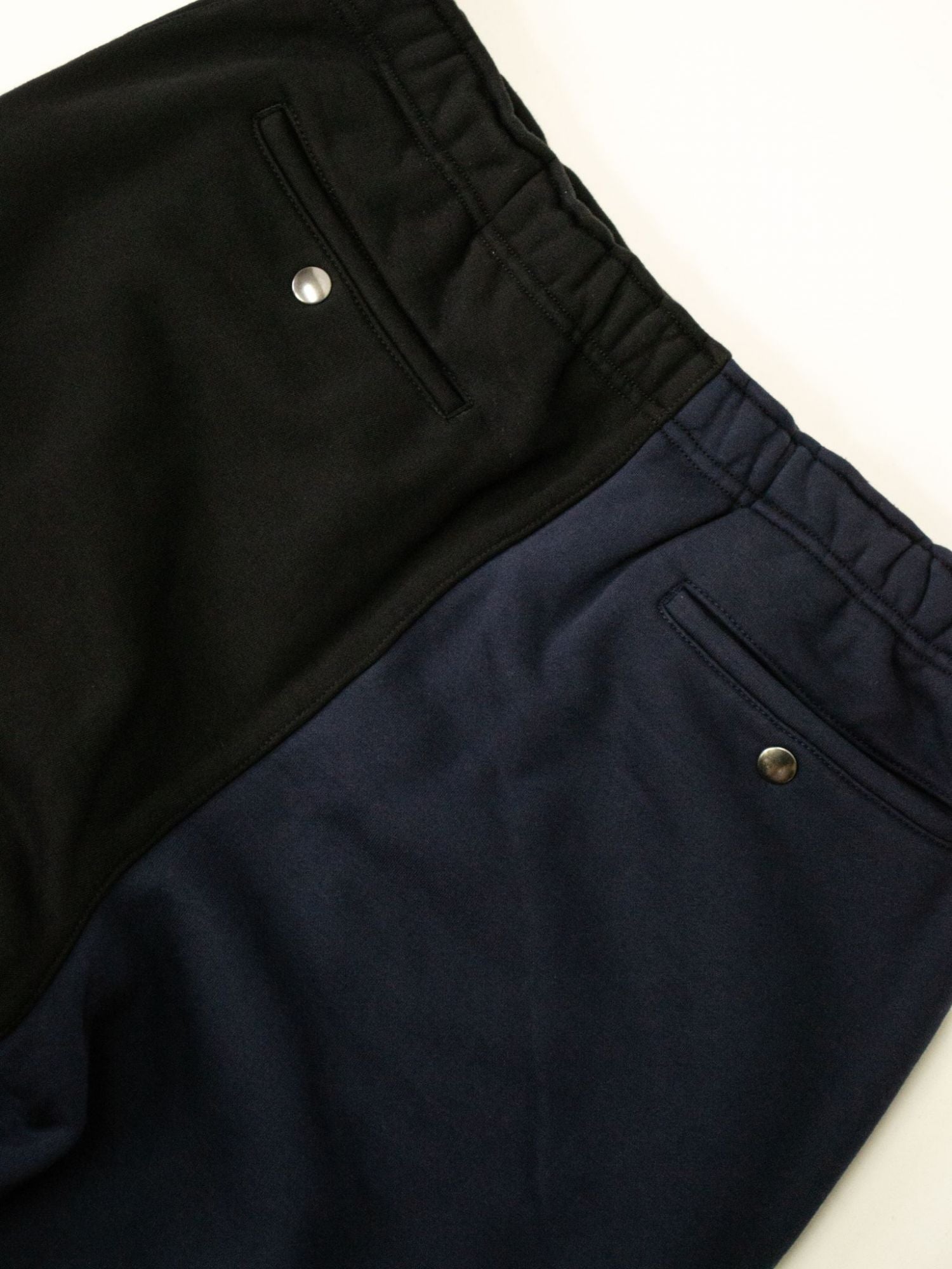 e.senに今季2021FWより新たに加わった品番・TINO(SWEAT PANTS)をベースに、大胆にも左右をブラックとネイビーで切り替え…