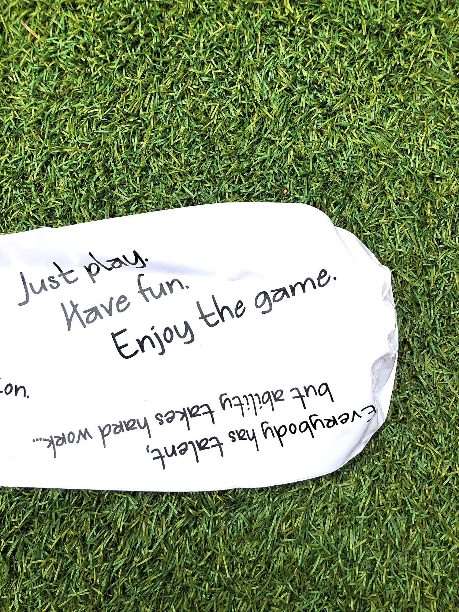 ランダムにプリントされたスポーツ界の名言たちとブランドロゴが可愛いビーチボール。