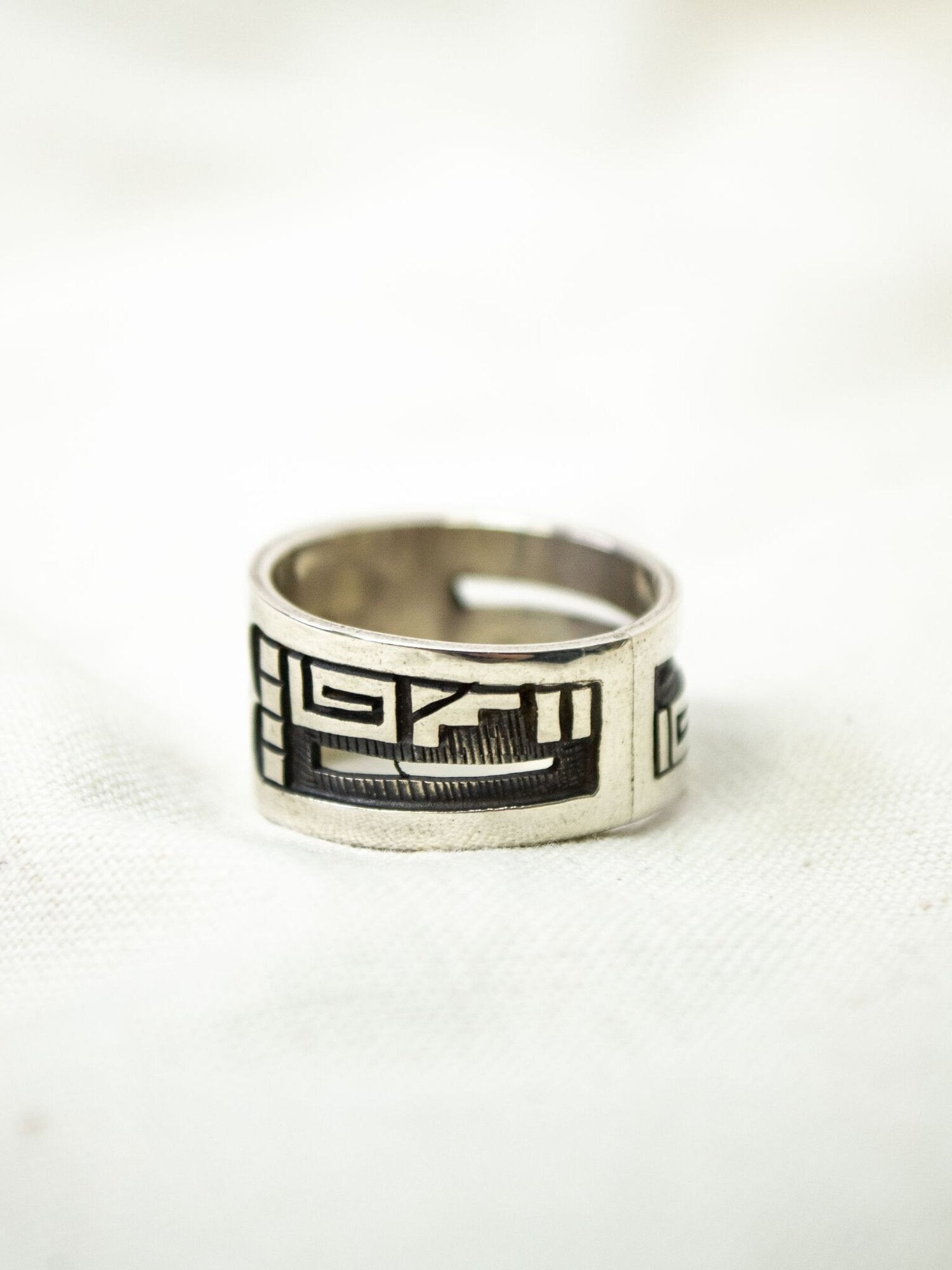 HOPI族のアーティスト"LUCION KOINVA"が、人々に幸福をもたらすとされる『精霊・ココペリ』をモチーフとして製作したオーバーレイリングをご紹介です。