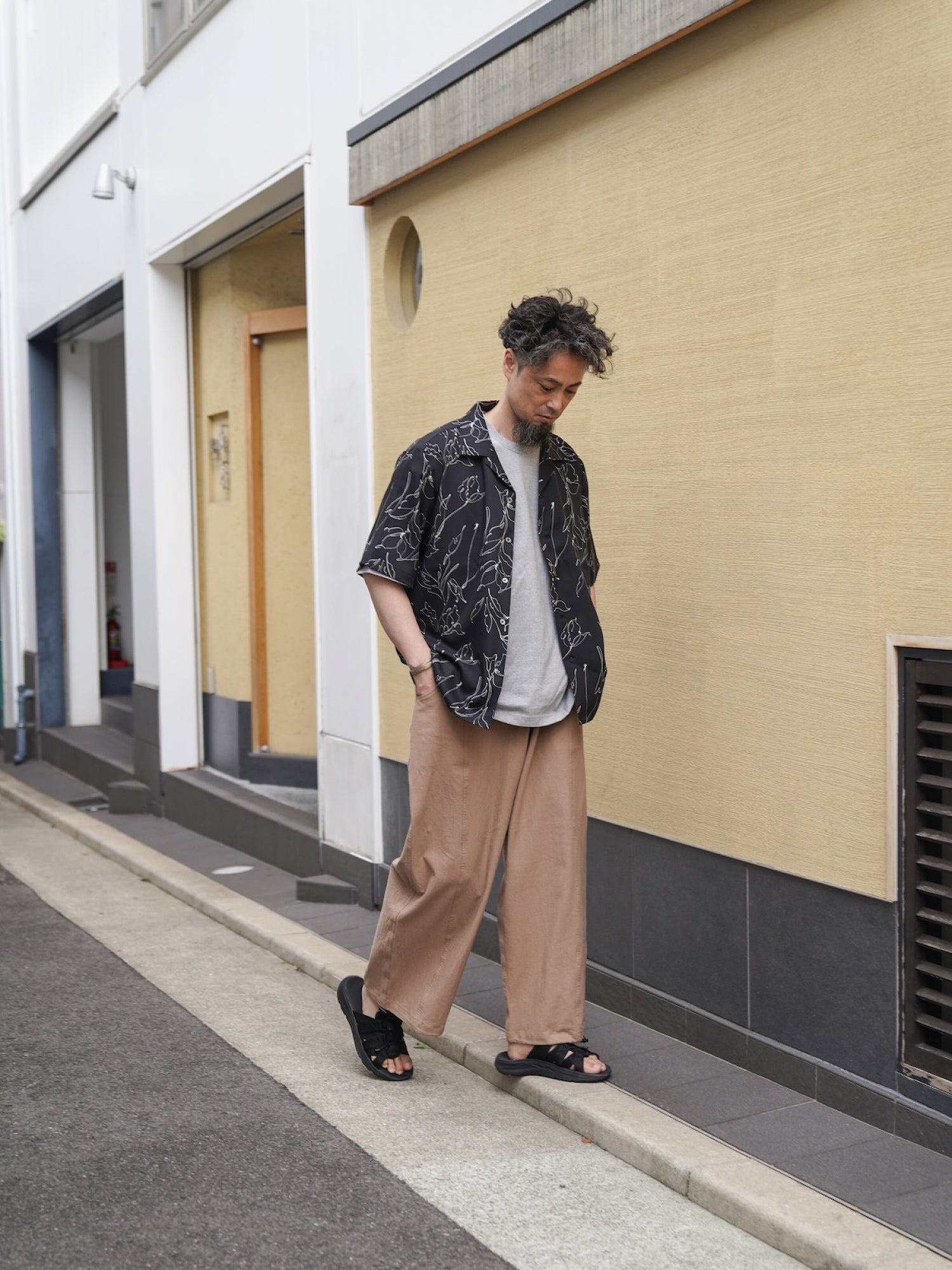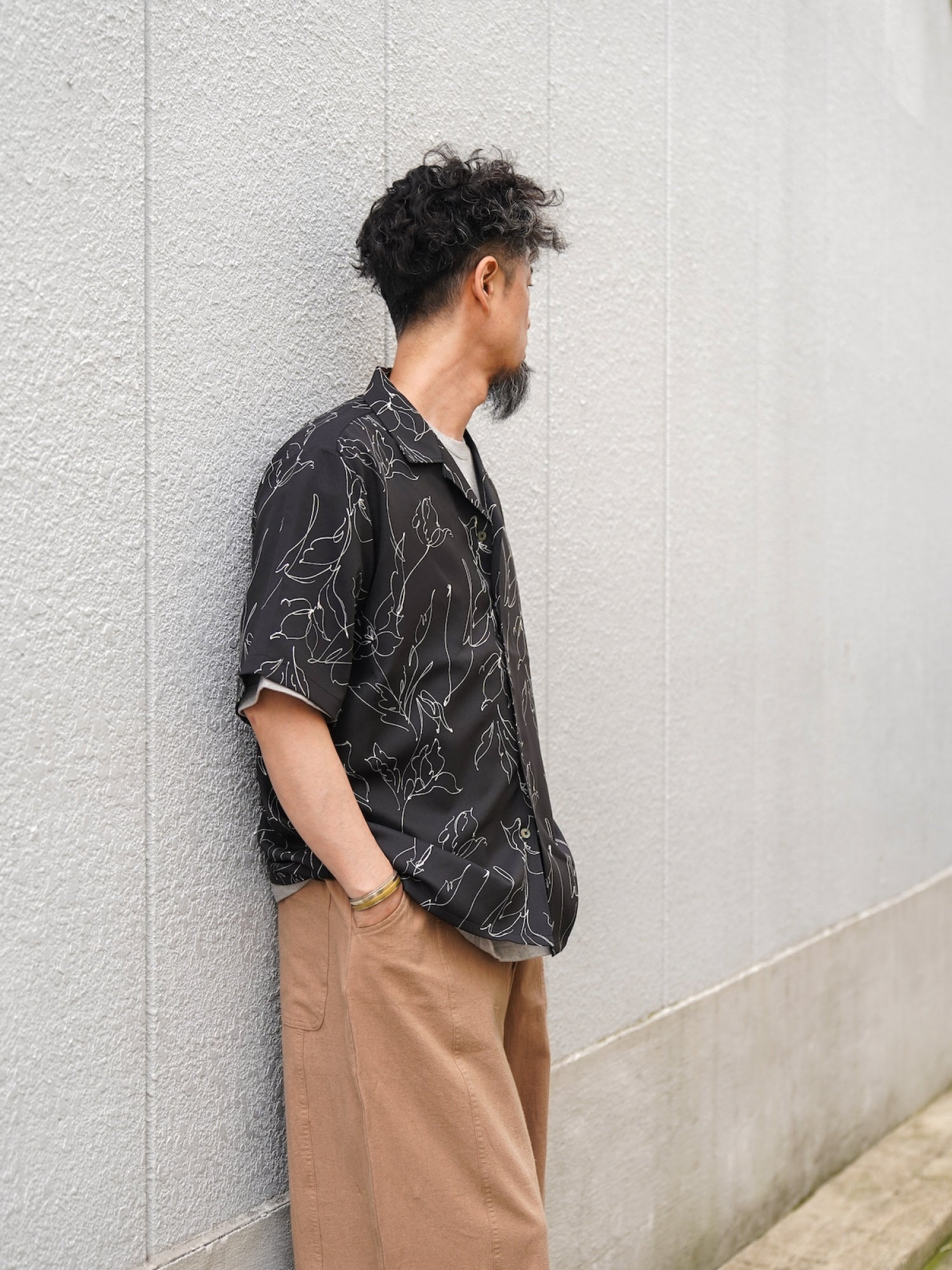 確かなファブリック選びと、コンテンポラリーな解釈で日常着を再構築する【Audience / オーディエンス】より、2025春夏の最新作となる『「丹後」 ライトアムンゼン(梨地) 捺染 モノトーンフラワー “マシンプリント” 開襟シャツ』が到着いたしました。