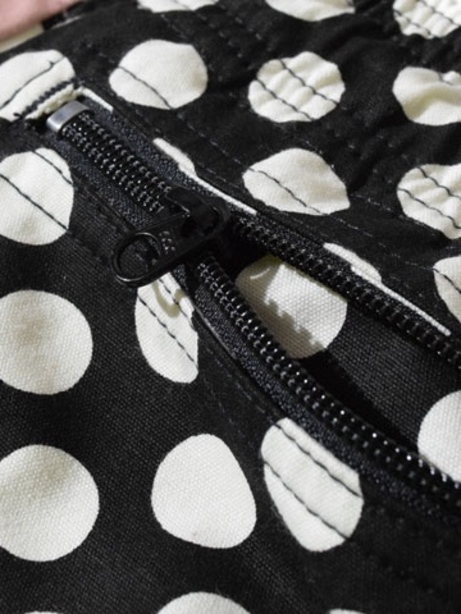 ウエストにはゴム入りに加えドローコード付きでサイズが着用可能、ファスナー付きのバックポケットも付属しており、アクティブな場面でも活躍します。