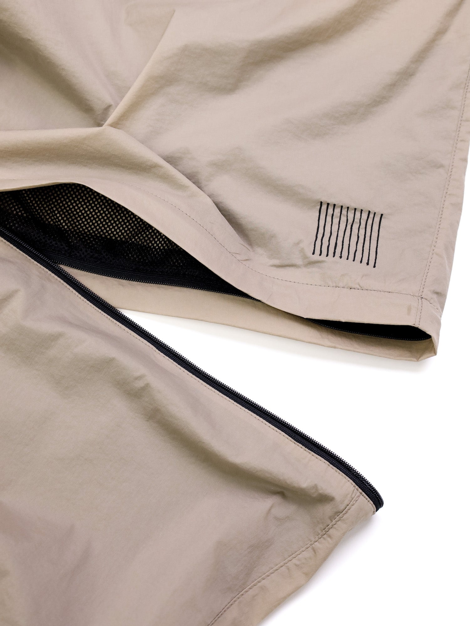 極太のSFC SUPER WIDE TAPERED PANTSをSHORTSにアレンジできるよう、ファスナーで脱着機能を持たせたDETACHABLE PANTS。