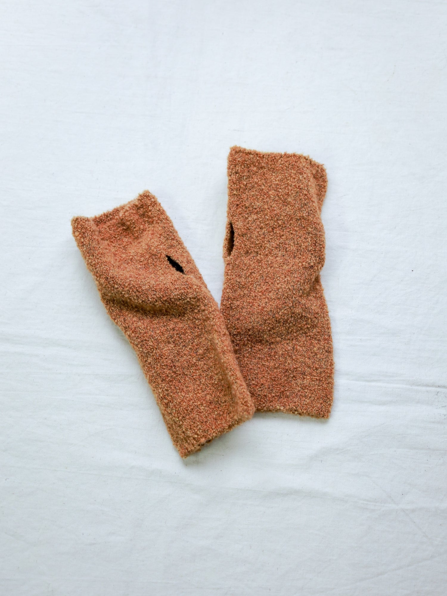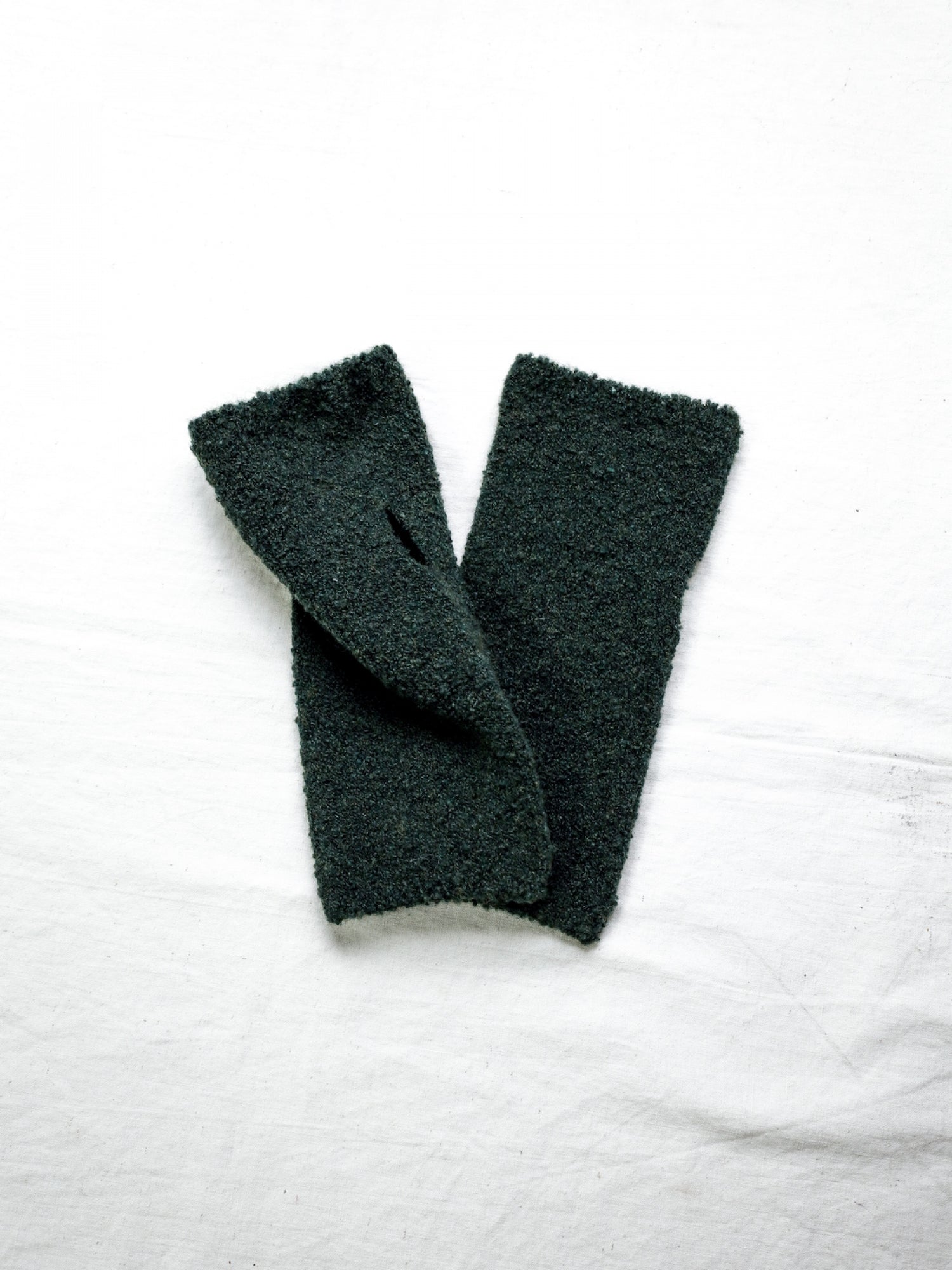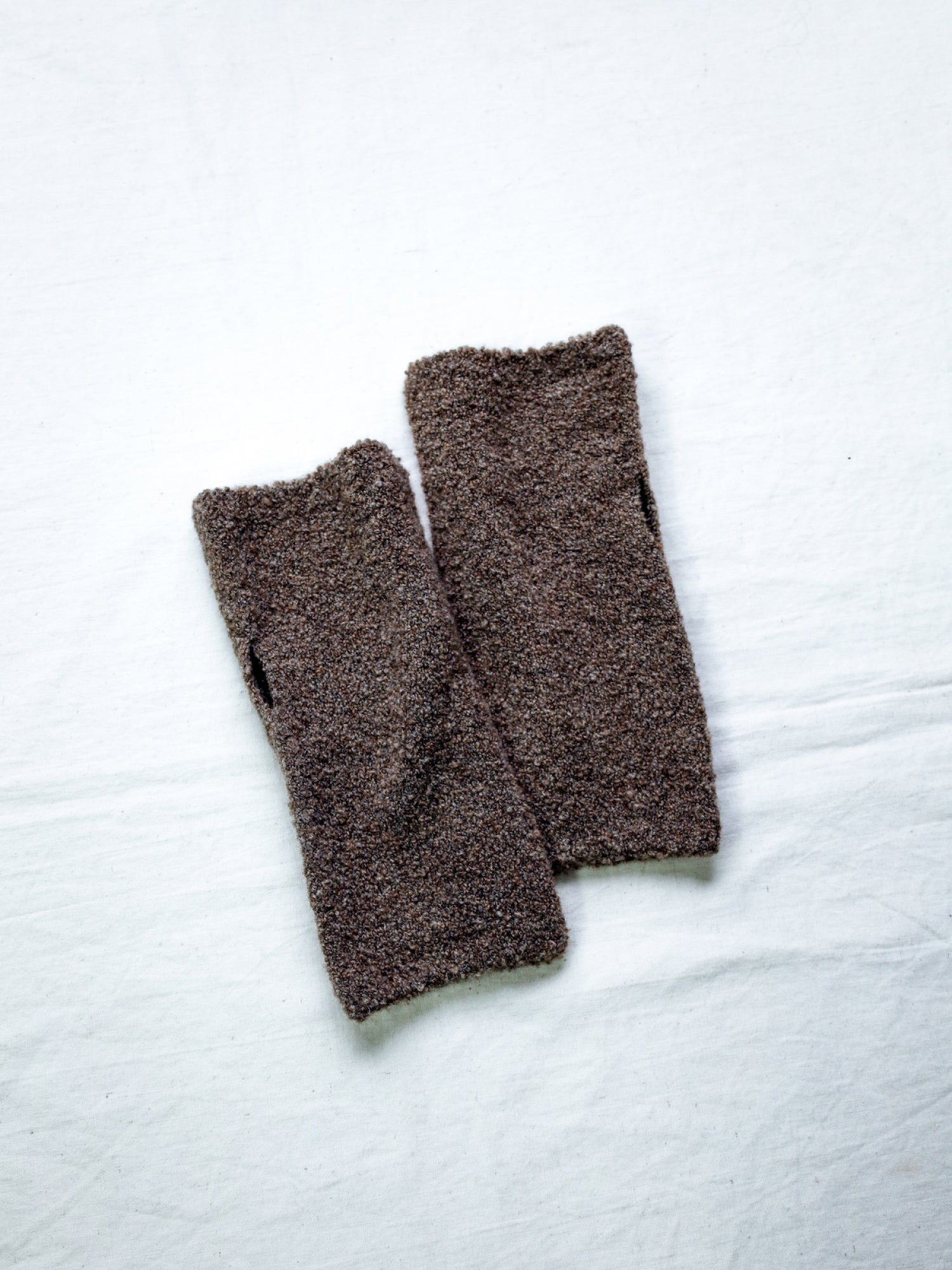 ウールの糸を使用し、フリースのような生地感に仕上げることで、暖かさと軽さを両立させたハンドウォーマーは…
