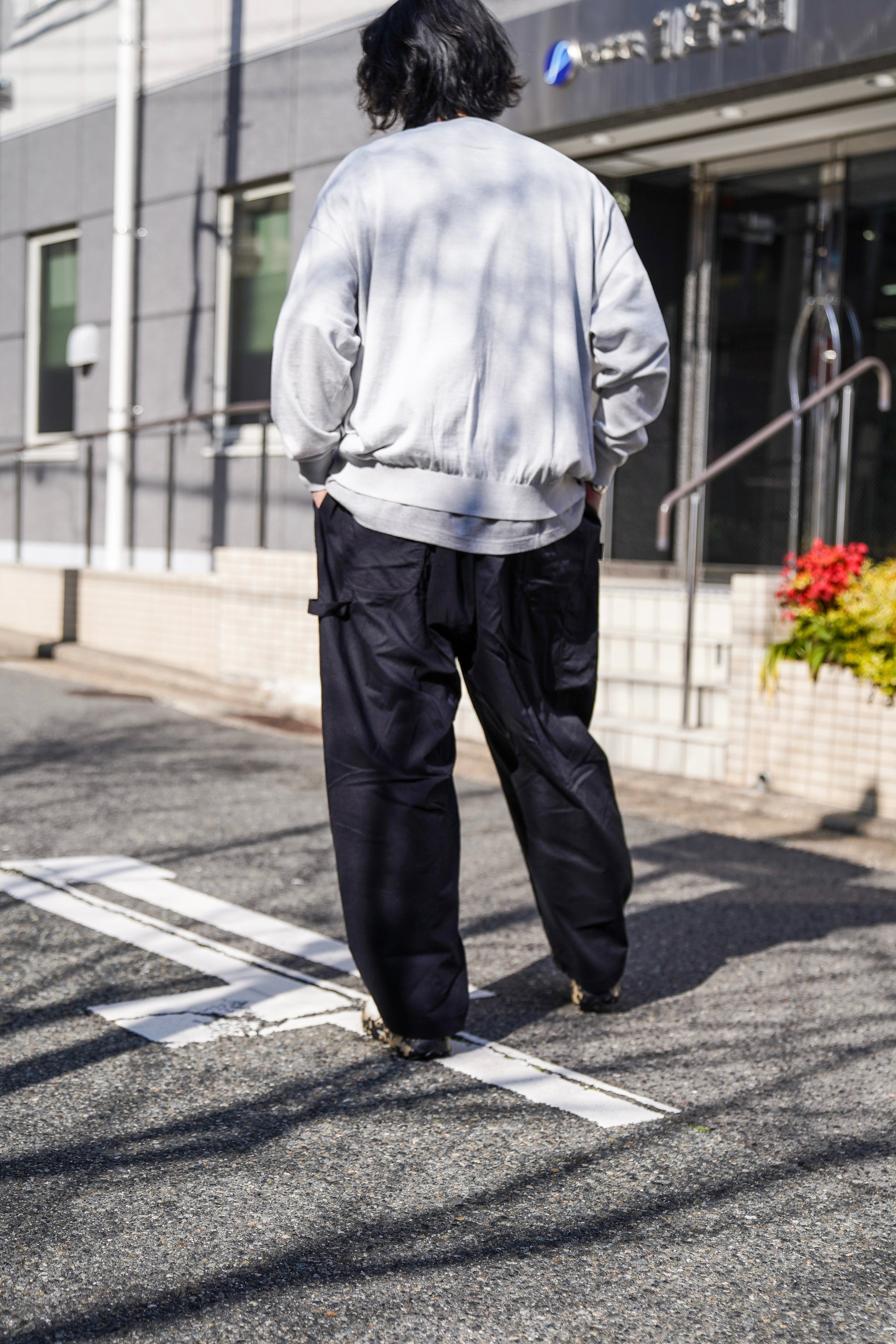 素材へ染色加工が難しいとされるポリエステルとナイロンの混繊系を使用した独特な風合いのストレッチナイロンをチョイス、洗練されたストリート感の漂う、「上品なワイドシルエット」が文句なし。