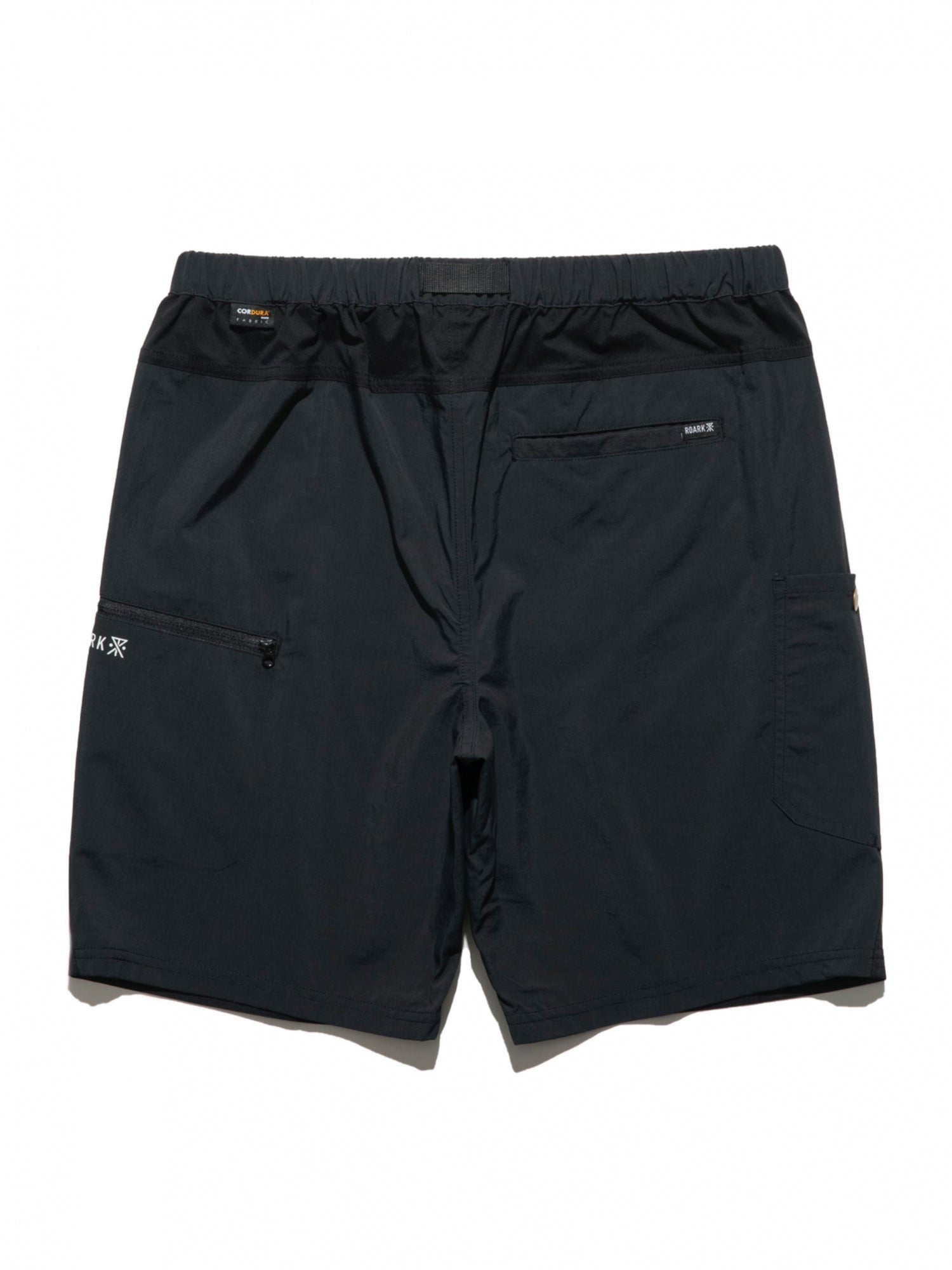 オリジナルでつくられた "コーデュラナイロン " と、高い撥水性&ストレッチ性を併せ持つ "ミノテック" の、2つの生地を独自のカッティングによるコンビネーションで仕上げることで、これまでに無いハイブリットショーツへと完成されています。