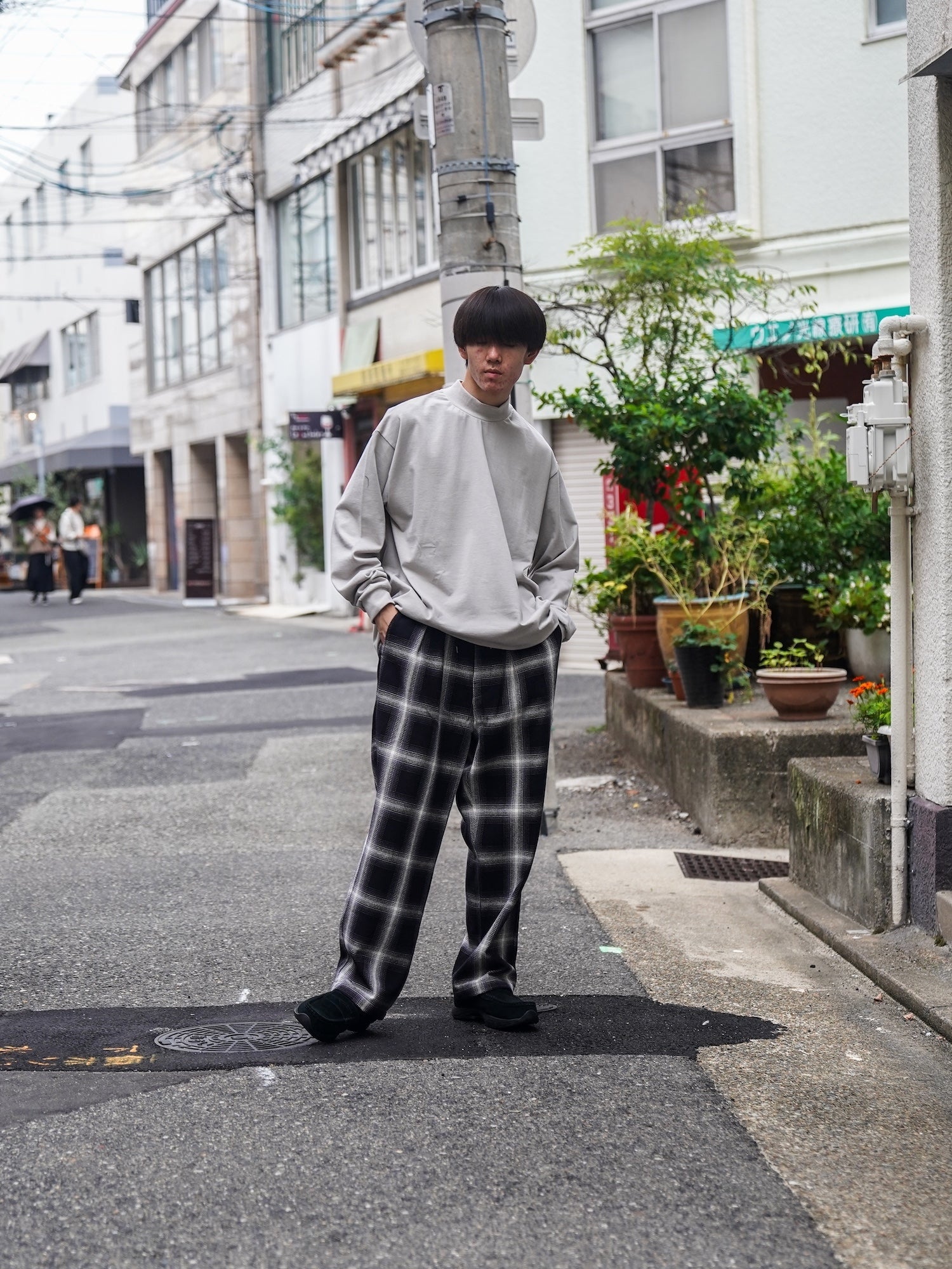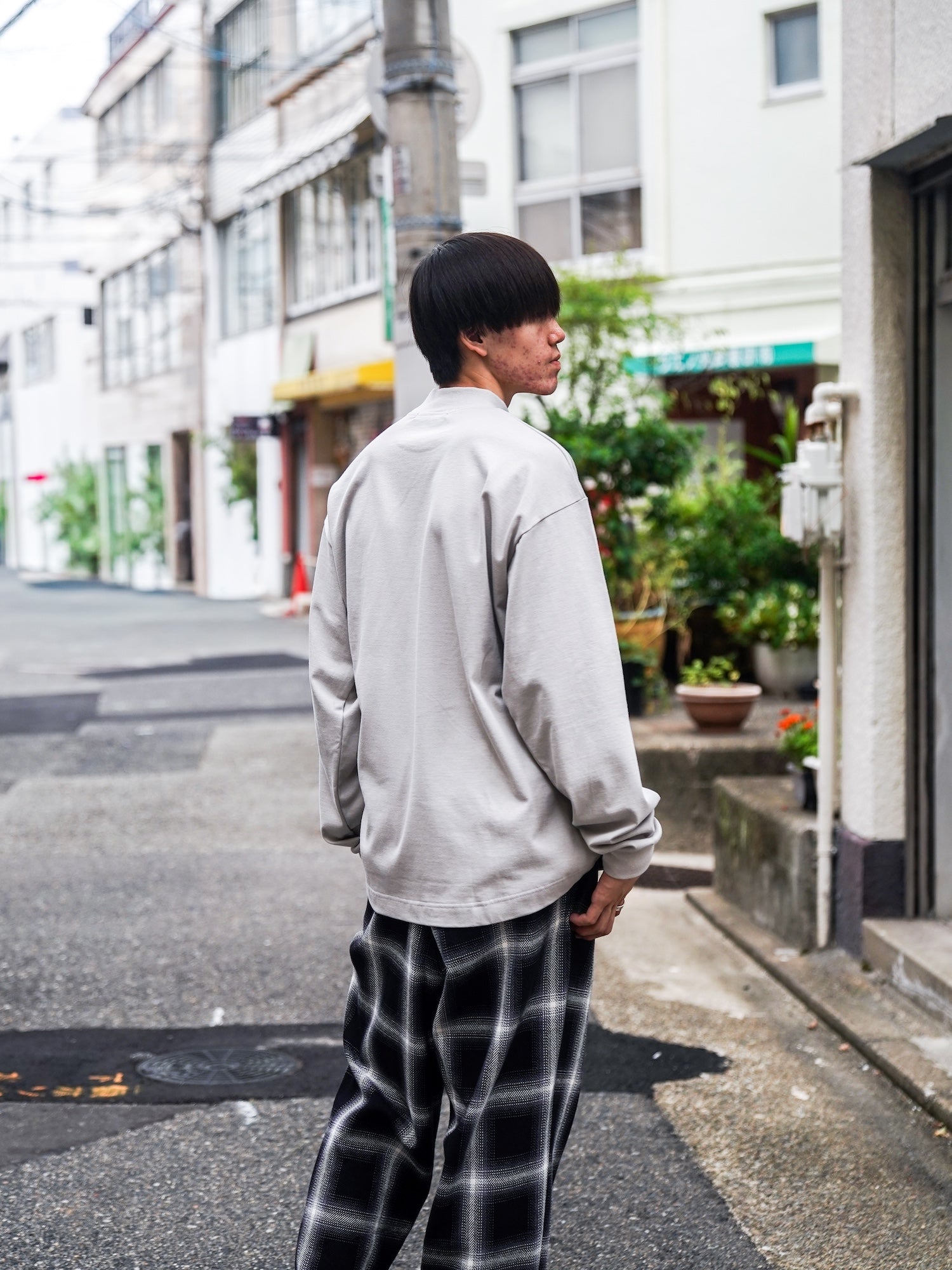 裾はまっすぐに整えてレイヤードの収まりを高め、ゆるさと清潔感を同時にキープします。